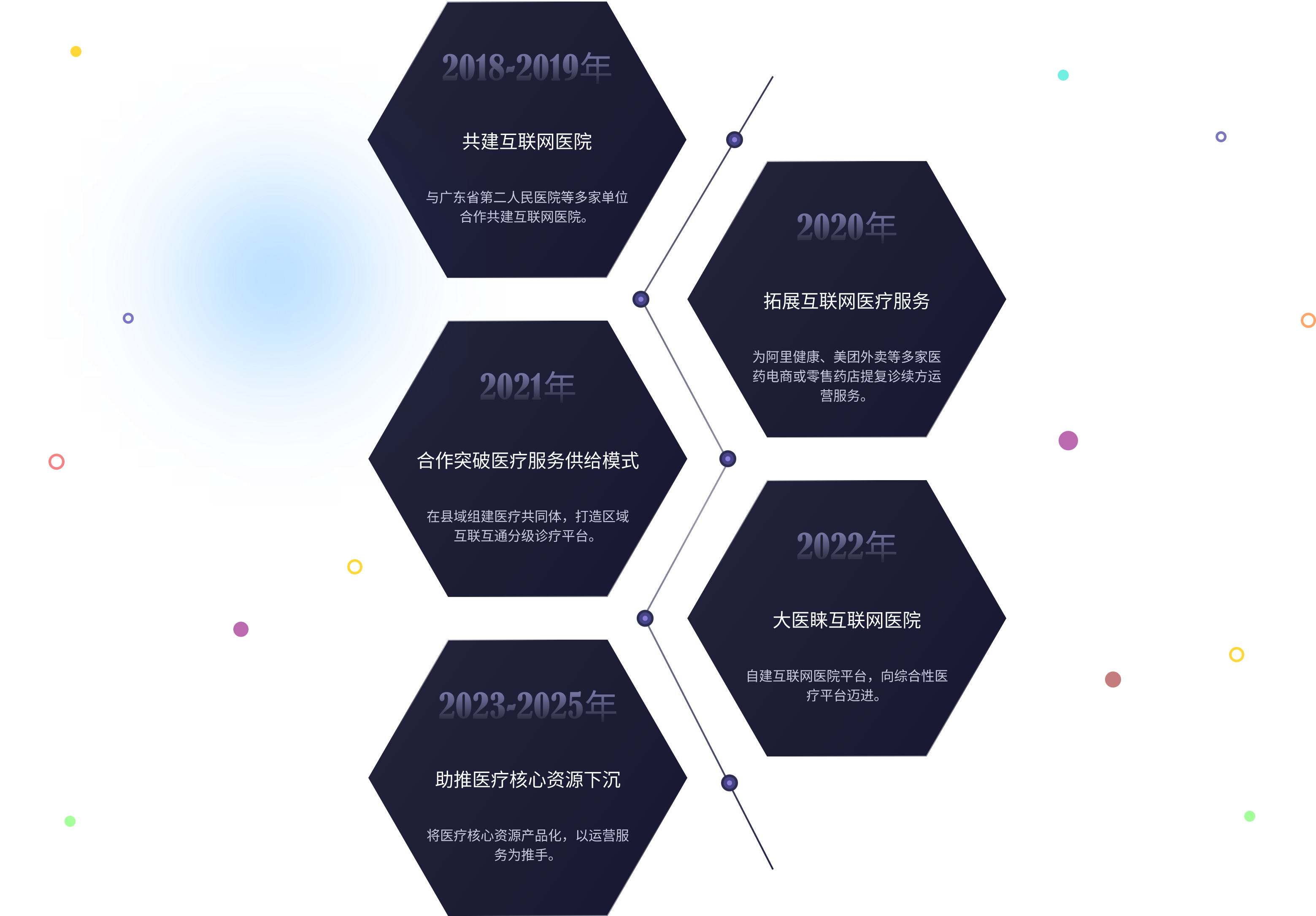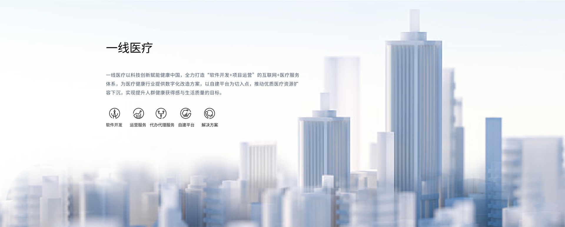 以“普及更廣泛、更便捷的醫(yī)療服務”為己任,聚焦數(shù)字醫(yī)療服務領域,致力于科技智慧創(chuàng)新醫(yī)療服務模式。全力打造“軟件開發(fā)+項目運營”的互聯(lián)網(wǎng)+醫(yī)療服務體系,為醫(yī)療健康行業(yè)提供數(shù)字化改造方案。以自建平臺為切入點,推動優(yōu)質(zhì)醫(yī)療資源擴容下沉,實現(xiàn)提升人群健康獲得感與生活質(zhì)量的目標。